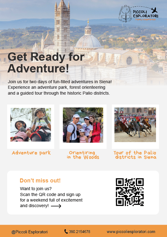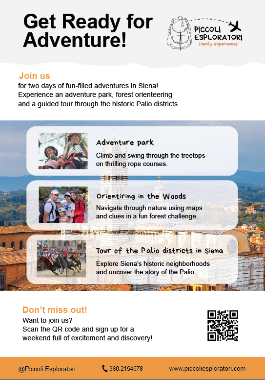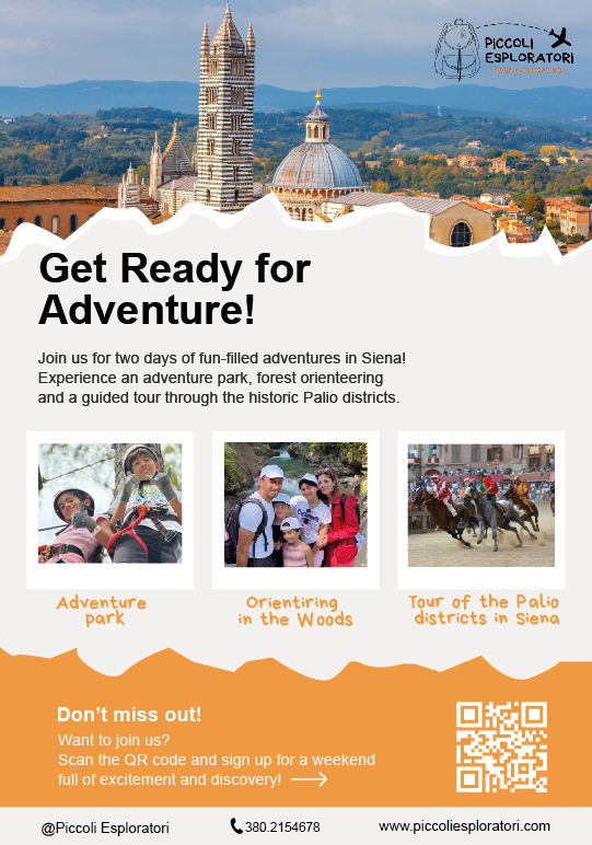 Posters voor Piccoli Esploratori moeten maken om een weekend in Siena voor te stellen met 3 verschillende activiteiten.